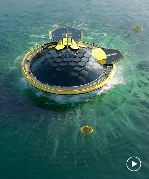 the floating structure functions as a self-sufficient ecosystem addressing climate change and resource scarcity