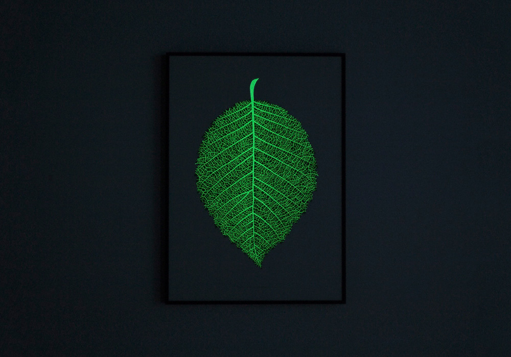 A luminescent pigment is used for expressing intricately detailed leaf veins.