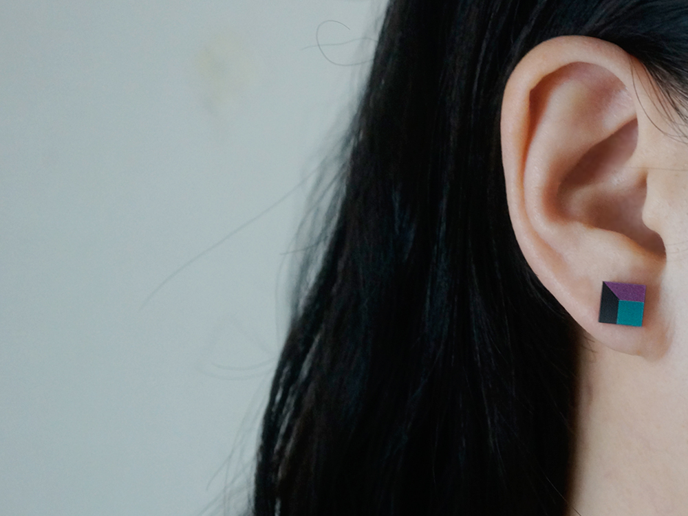 Flip lenticular square earrings reacts according to wearer’s movements
