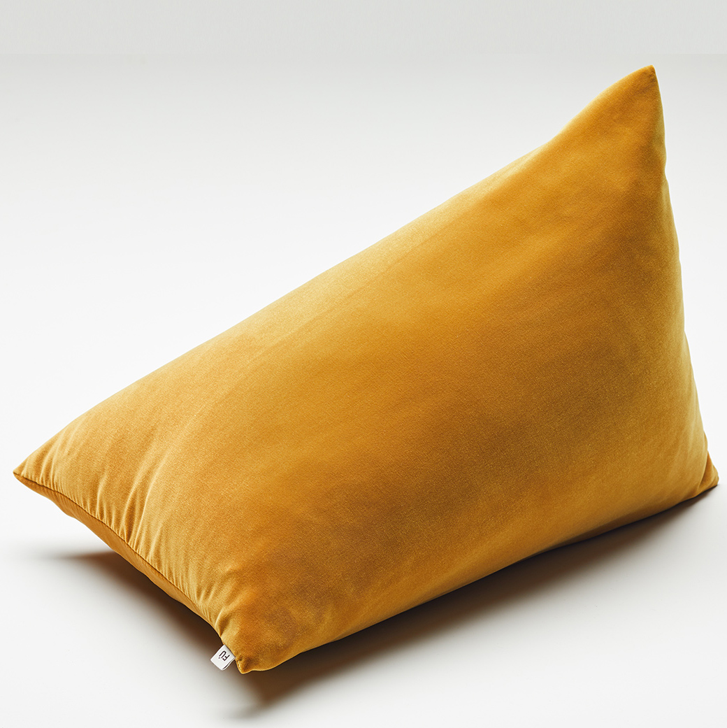 Add a touch of color to your couch, create a focal point in your living room, and let the TRI Cushion redefine the way you experience comfort and style. Produced with short production routes in Germany. Its sculptural form effortlessly enhances a contemporary aesthetic, making it a true work of art for your home. The material, Velluto, is a velvet fabric made in Como, Italy. Measurements: 49 x 33 x 33 cm.