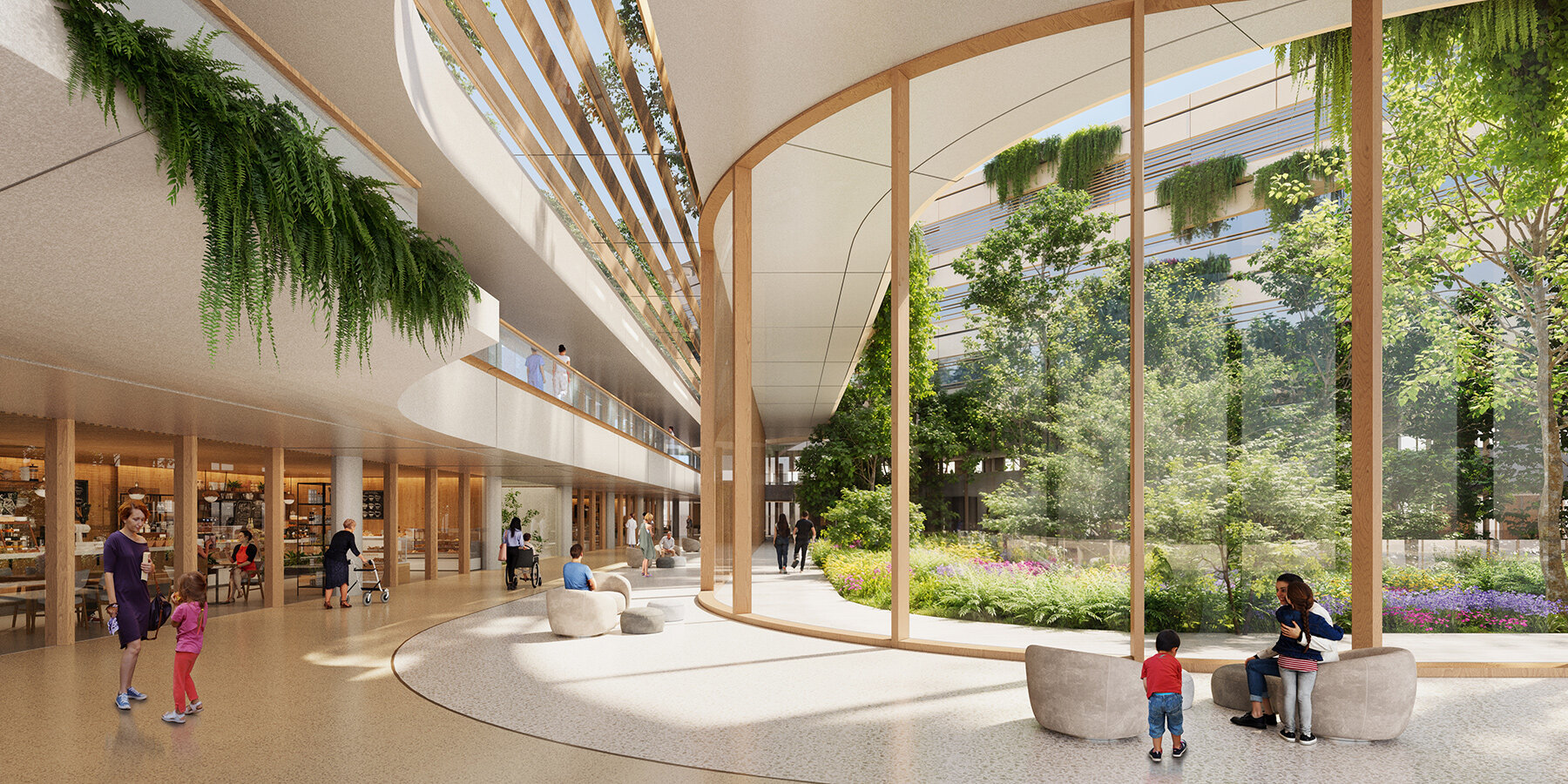 gardens, courtyards, and roof terraces support recovery and staff wellbeing