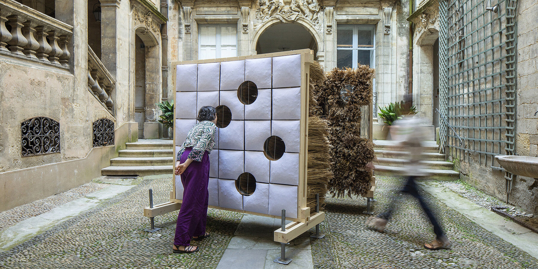 as visitors move through the installation‘s interior, the thatch envelopes them and creates intimate moments of interaction