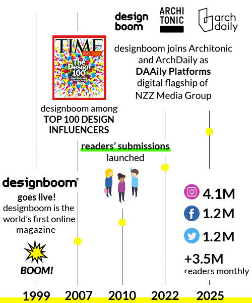 designboom is based in milan, beijing and new york and has gained a global reach of 3.5 million readers and 390,000 newsletter subscribers.