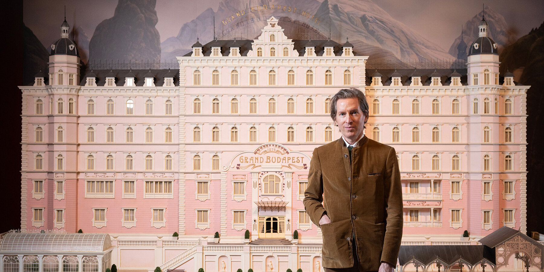 Wes Anderson in front of the Grand Budapest Hotel model | image by Matt Alexander, PA Media Assignments