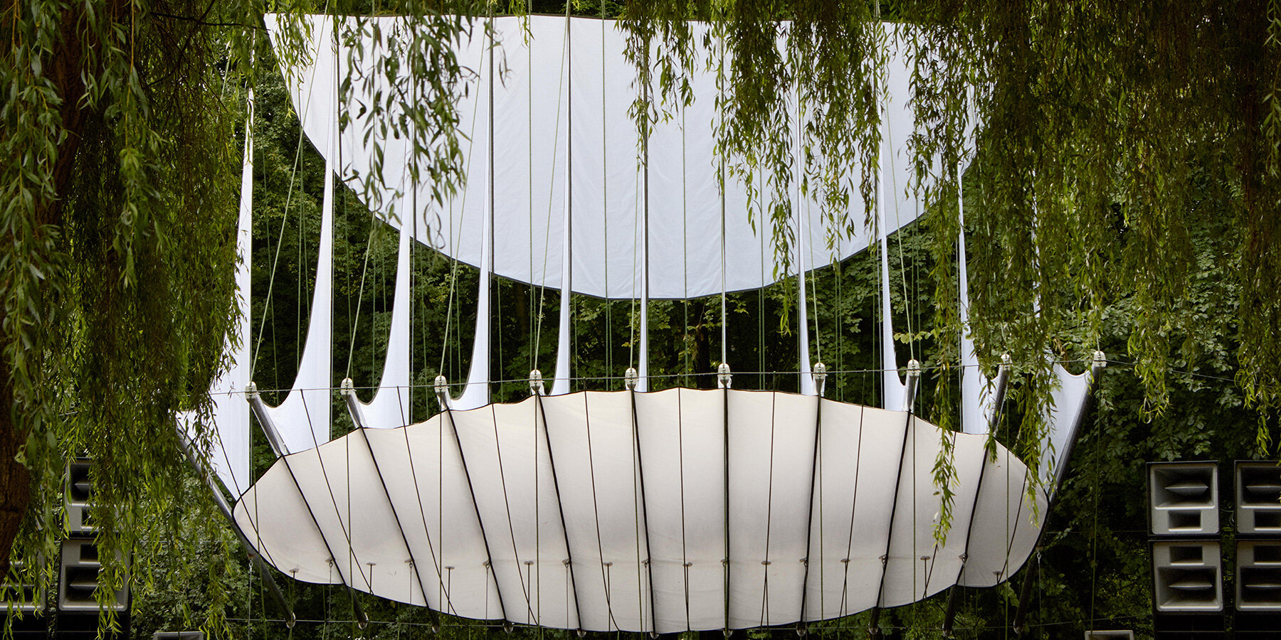 a lightweight, expressive textile canopy that hovers above the stage