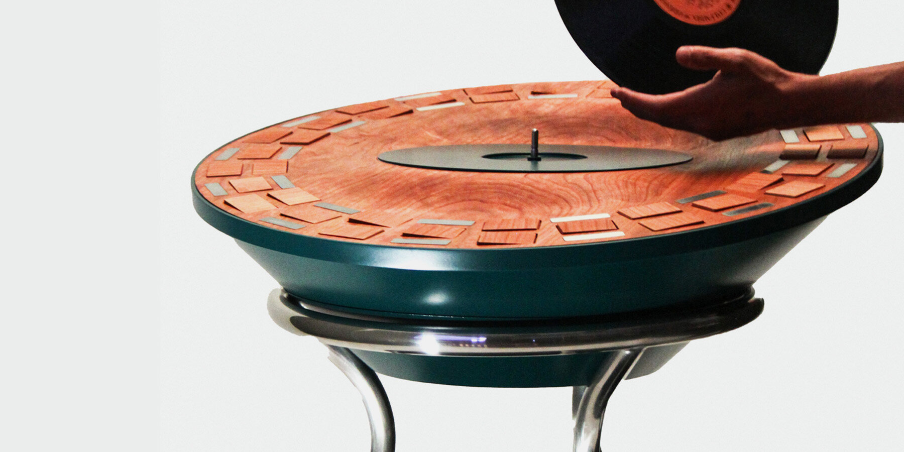 as the record plays, the wooden tiles flip and move in response to the music