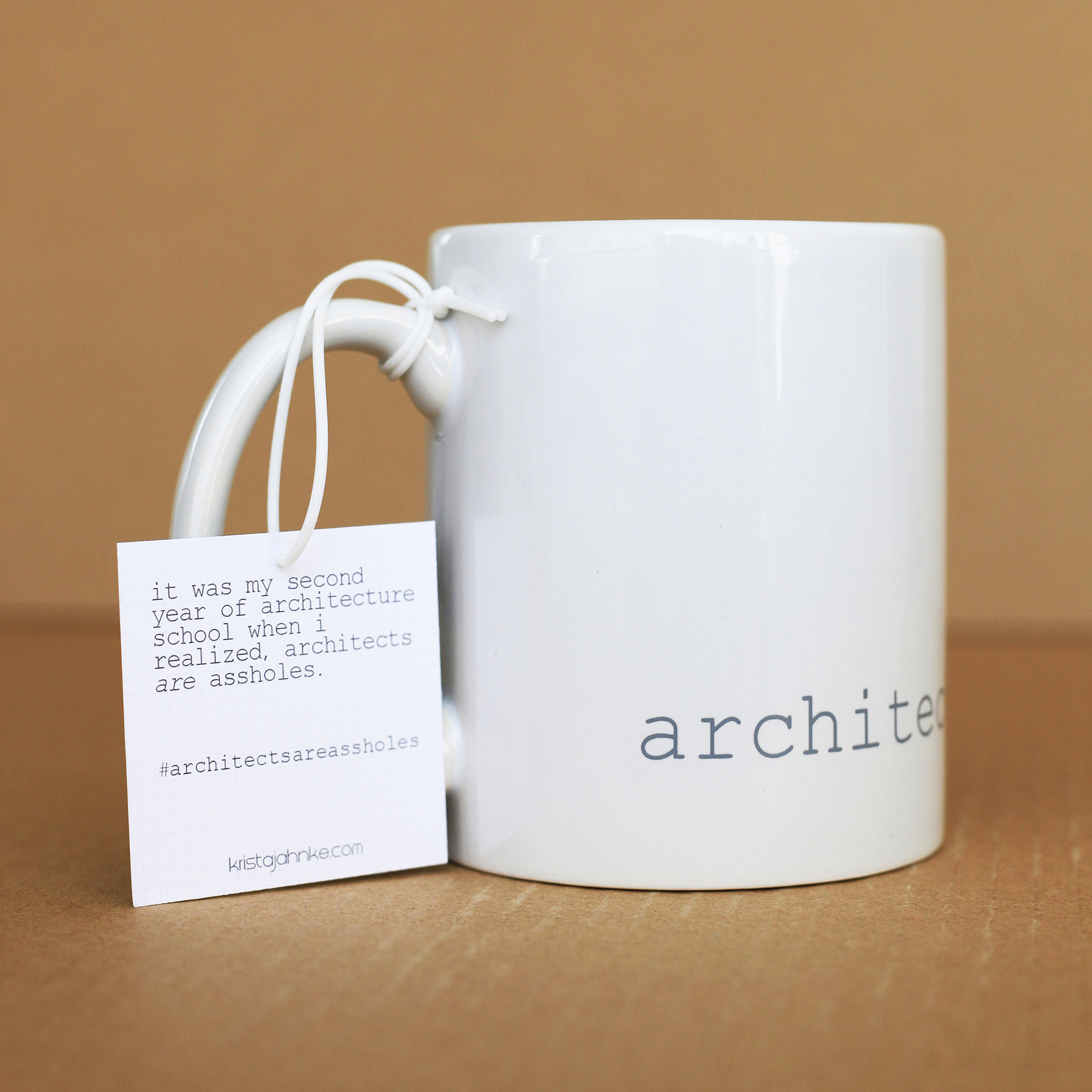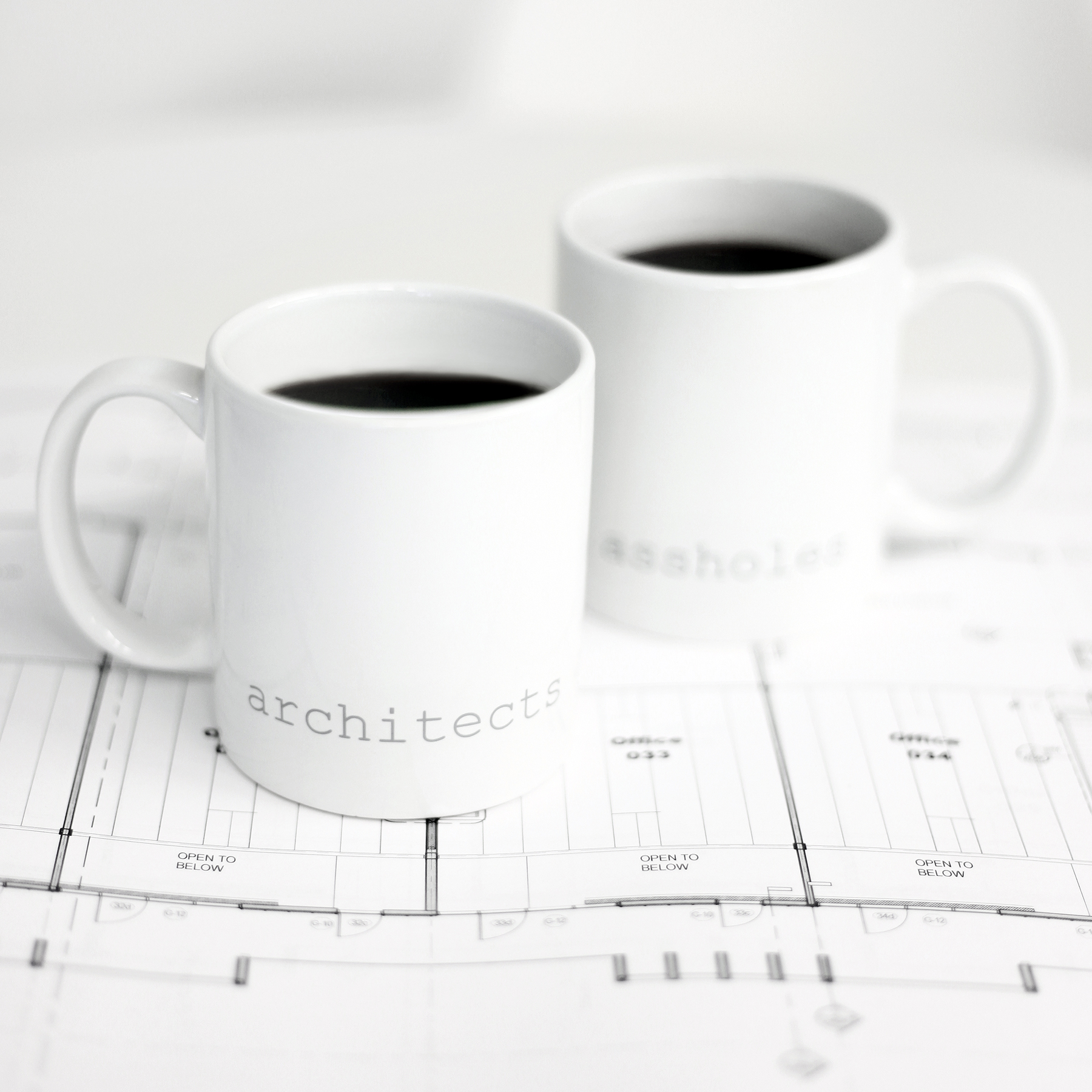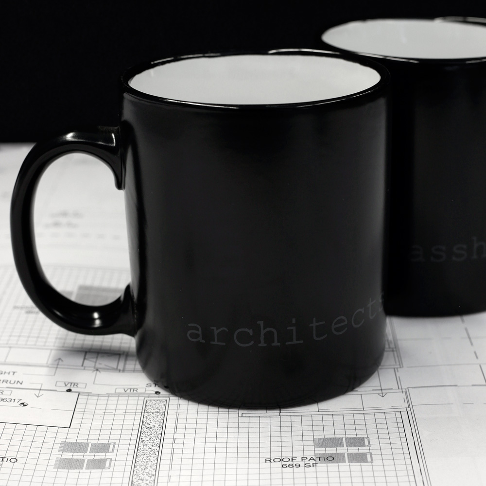 The minimal 11oz mug is a standard classic design that architects and designers can appreciate. Printed using photography’s quintessential 18% grey and courier new font that hearkens back to the mid century modern typewriter, the architects are assholes mug is a cheeky nod to architecture’s provocative personalities. The mugs are available in bright white and matte black with white interior.