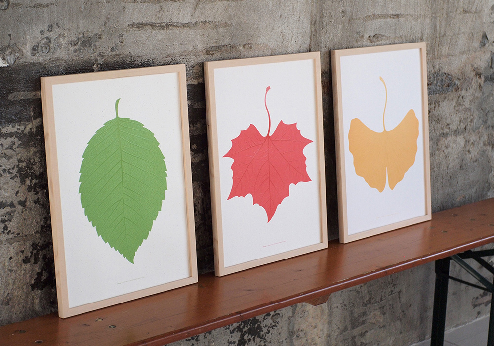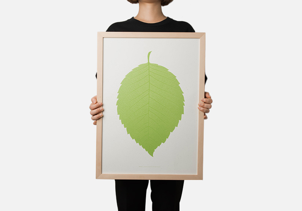 With environmentally-friendly paper made with recycled green tea, seaweed, and brewer’s grains, the texture of leaves is elaborately expressed.