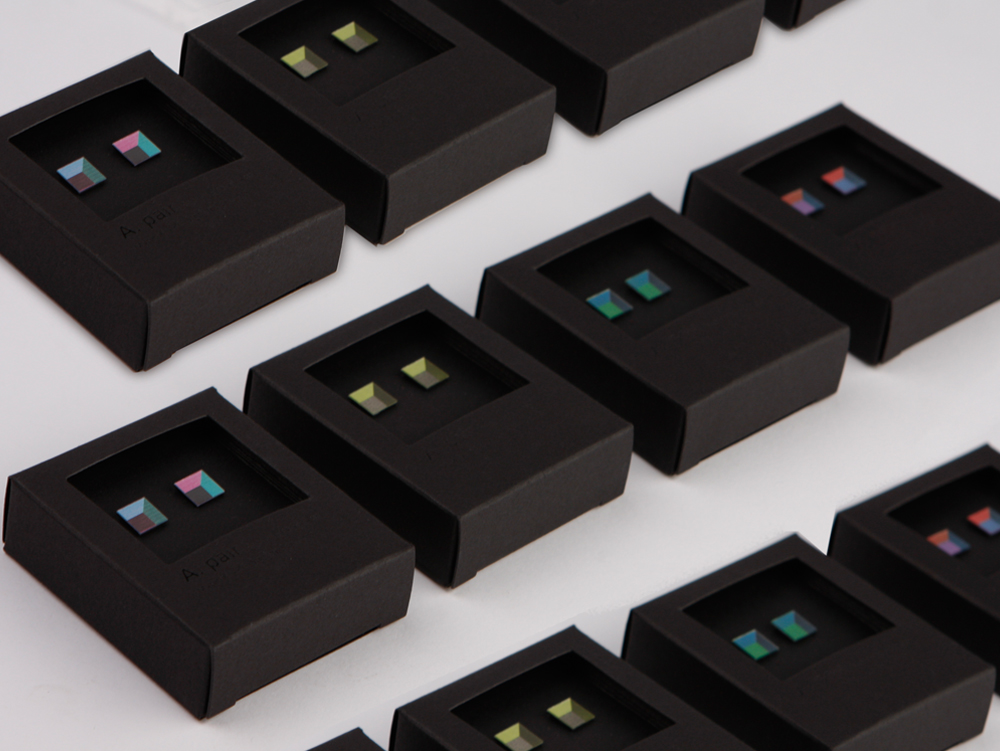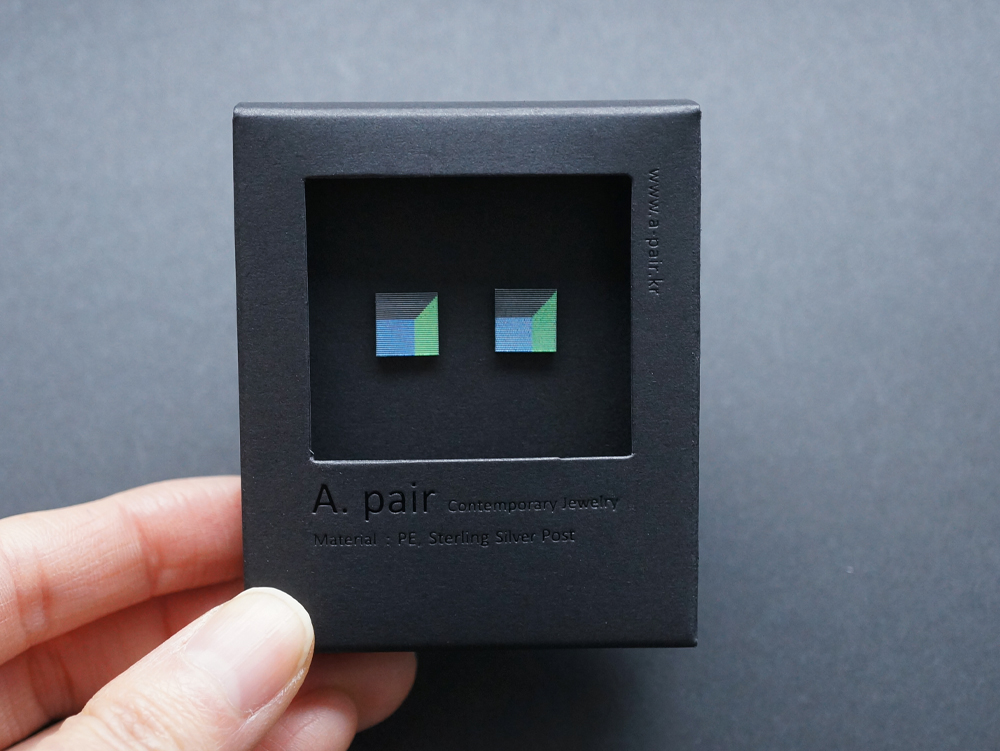 The earrings based on a lenticular multi-view display system where lens are utilized. When it is viewed with the lens from various angles, the viewer can see the reflection of the simple structure and image graphic characteristics. The divided graphic images instantly change with the wearer’s movements.