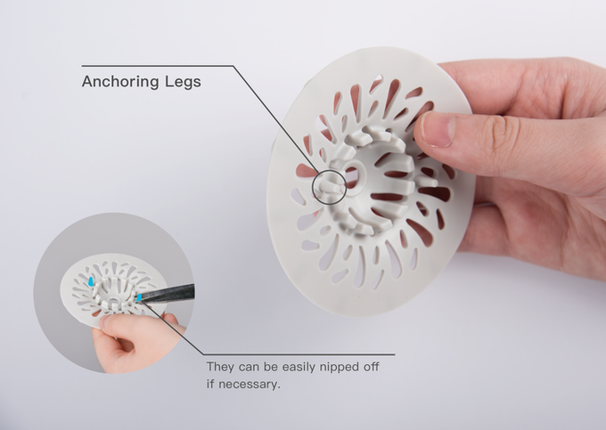 Catching hair and debris with its unique volcano structure, water can still pass through freely down the drain. Soft silicone material with antibacterial silver ion particle added. Tool-free installation, easy to clean!
