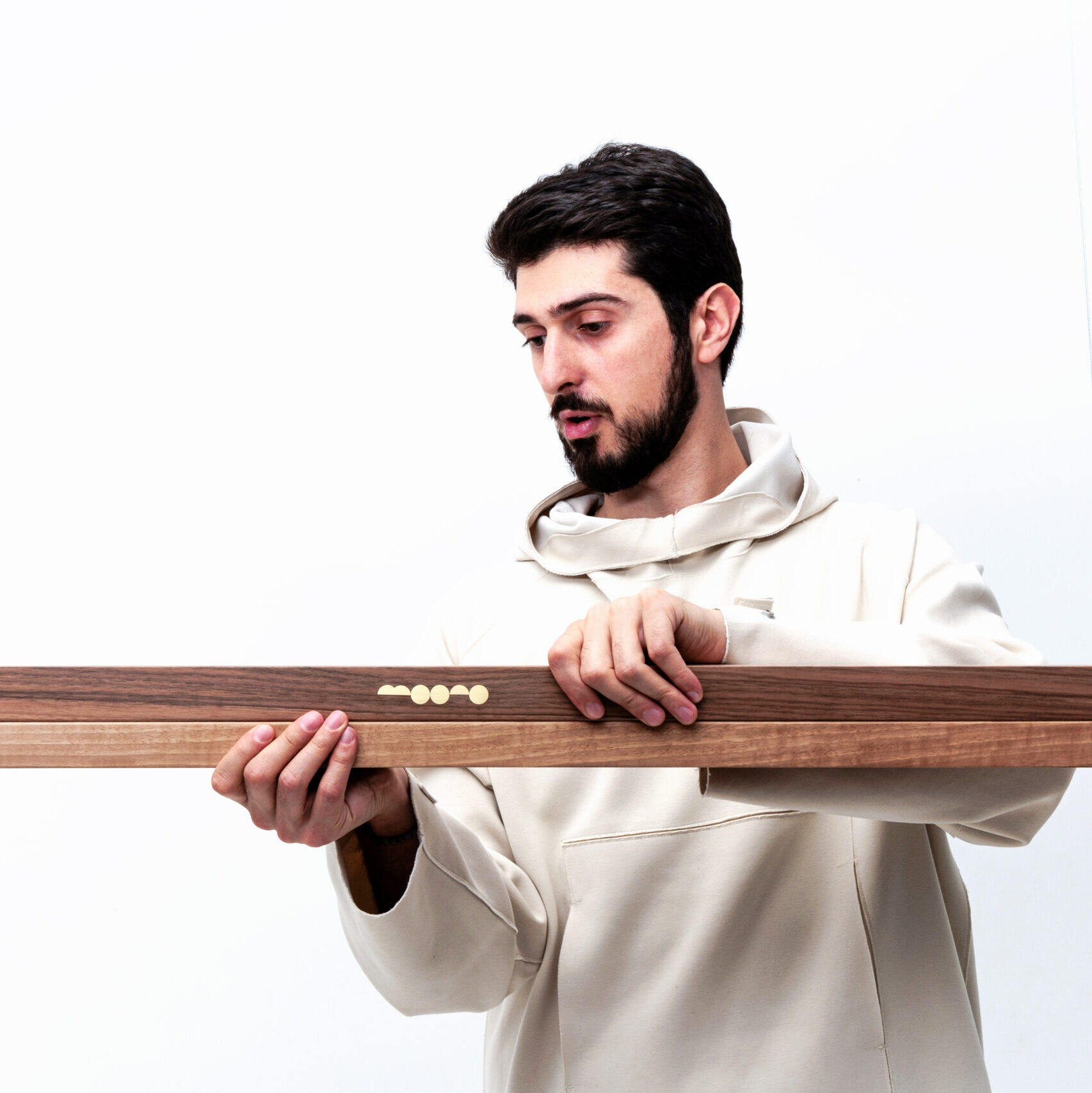 Moono is an innovative sliding light that transforms adjustable lighting into an art form. Handcrafted from premium oak or walnut, with refined brass and aluminum accents, it blends timeless elegance with modern functionality.