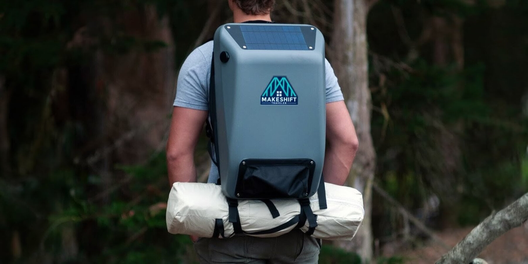 HomeMore Project’s solar-powered backpack comes with a rolled-up sleeping bag